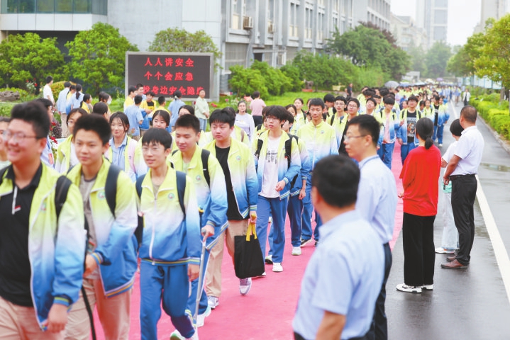 6月13日,日照港中学的初三学生统一乘车赶赴考点。当日,2025年日照初中学业水平考试在微微细雨中拉开帷幕。全市33507名初三和32764名初二地理生物会考考生怀揣梦想,奔赴日照的4个考区、19个考点,书写属于自己的青春答卷。