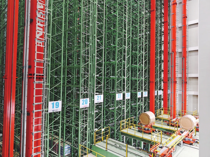 近日,在亚太森博(山东)浆纸有限公司,高达38米的数字化成品自动仓库内,一捆捆白卡纸板纸卷正通过自动化输送线精准流转。