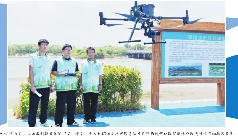 在齐鲁大地的山水之间,一支支由山东水利职业学院师生操控的无人机队伍正展翅翱翔:在日照山海天的万亩松林里,它们化身“空中侦探”,凭借人工智能技术精准定位松材线虫病疫木,为林业生态筑牢防线;在黄河流域的千条河道上,它们充当“航眼卫士”,以高效巡查守护碧水清波,为美丽中国建设注入青春力量。