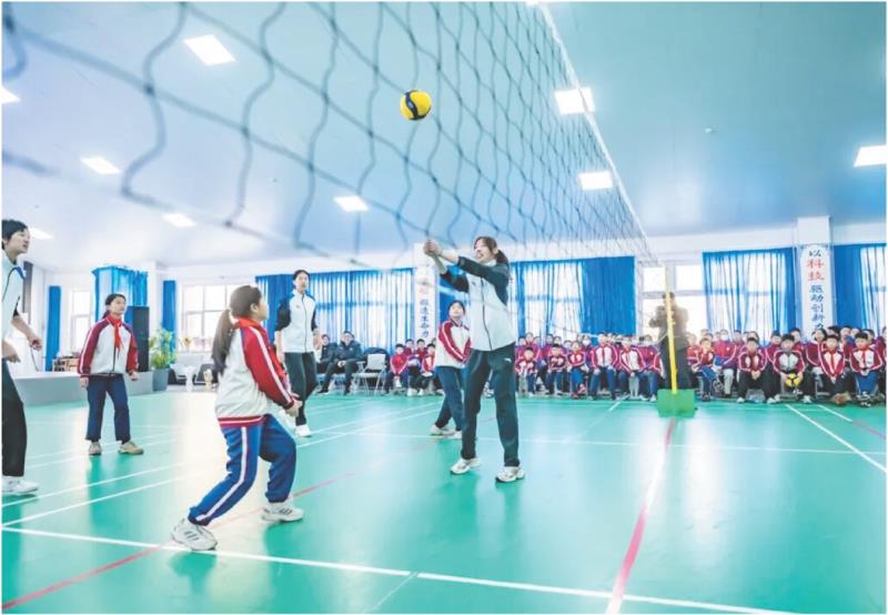 2025年12月29日,山东日照钢铁女排的队员们走进东港区天宁小学,开启一场特别的“全运冠军公益行”活动。女排队员们走进学生中间,分组指导排球基本动作。随后进行的混合编队趣味活动中,专业运动员和校园小将们并肩作战进行了一场有趣生动的排球比赛。