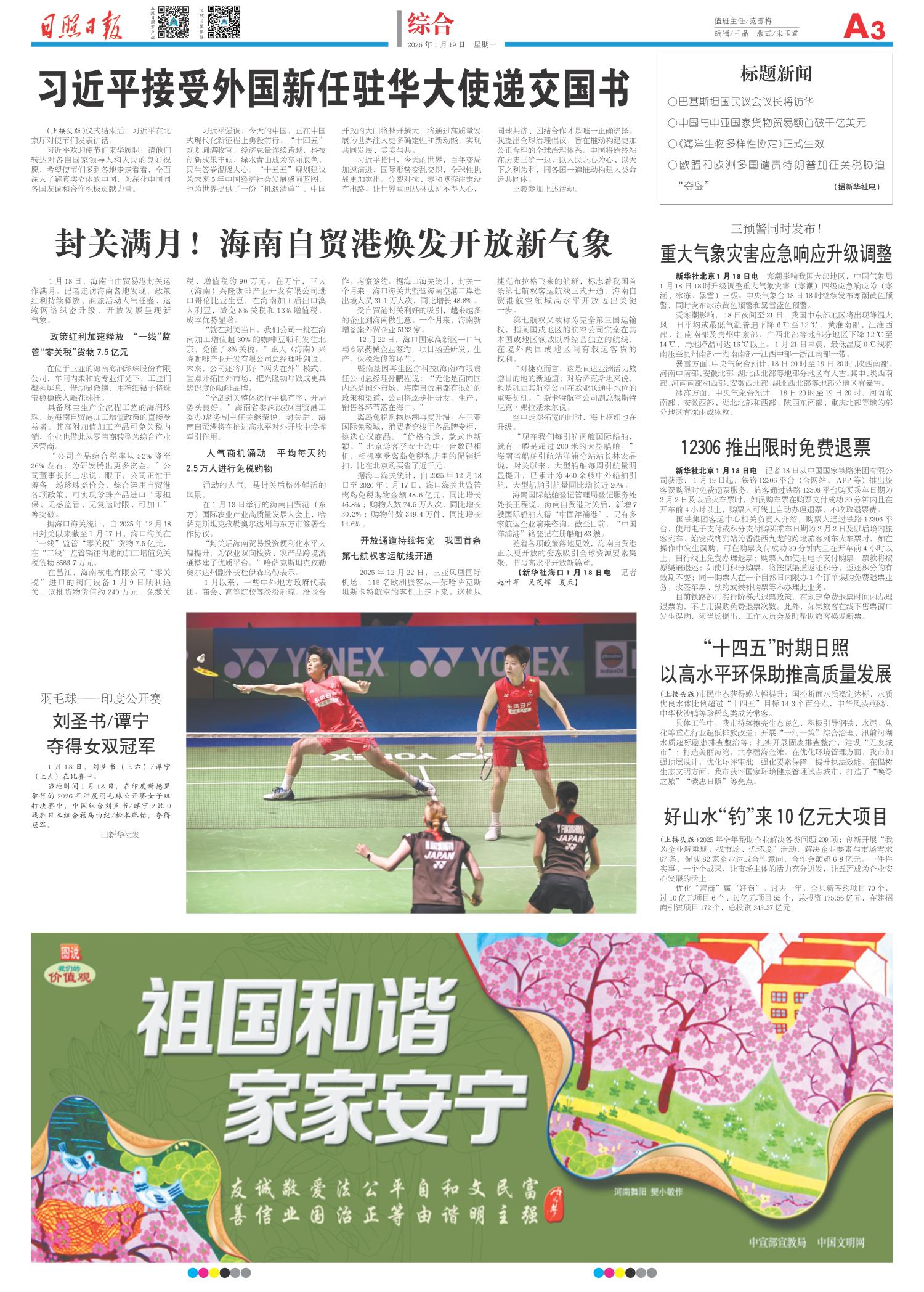接受时峰、尚洪兵同志因年龄原因辞去日照市第十九届人民代表大会常务委员会委员职务的请求,接受杨洪福同志因工作需要辞去兼任日照市第十九届人民代表大会功能区委员会主任委员职务的请求,报日照市第十九届人民代表大会第六次会议备案。
