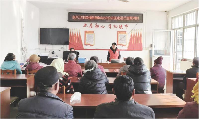 为进一步落实“四送四进四提升”健康促进行动,1月13日上午,岚山区高兴卫生院组织医务人员及志愿者到后唐家河村,开展慢阻肺防治知识讲座暨健康宣教活动。