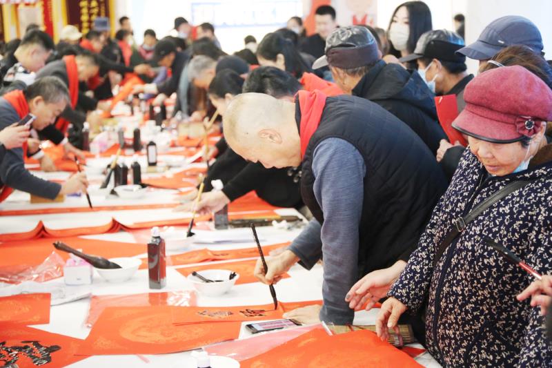 1月15日,东港区日照街道迎宾社区内人头攒动,欢声笑语,全省同步启动的“万福迎春”山东省文联第十五届“百县千村”书法惠民活动日照分会场在此举行。