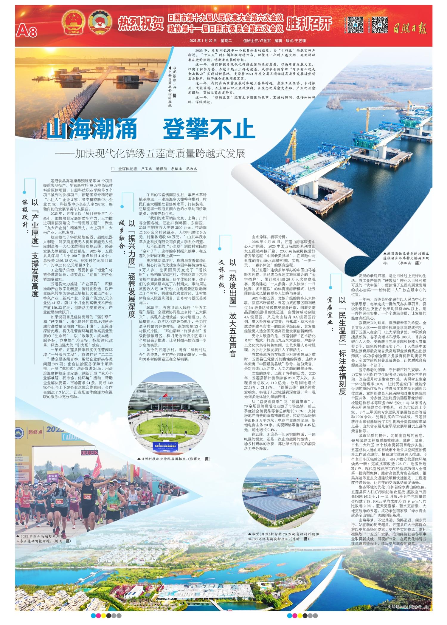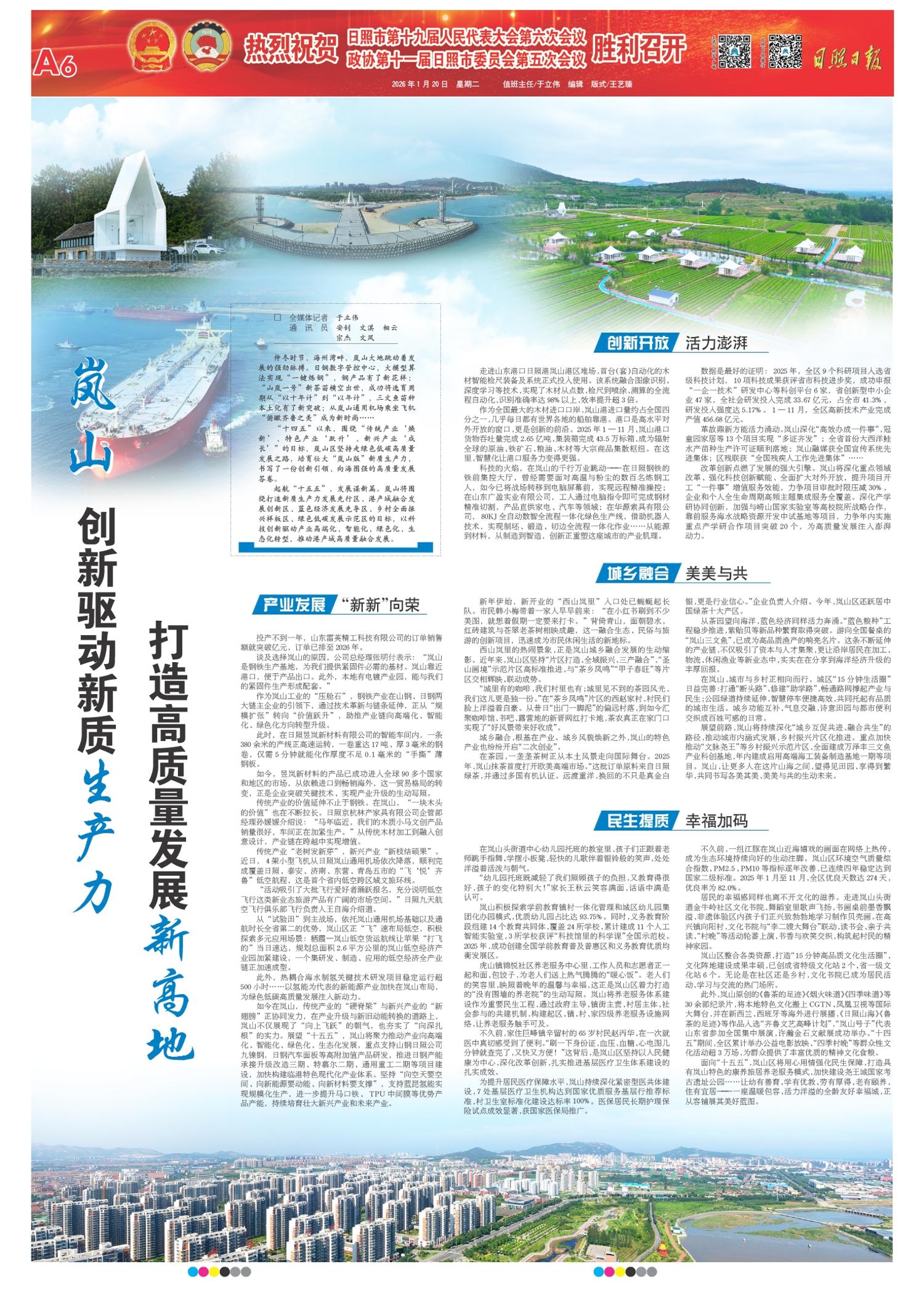 职业教育也为地方发展攒足后劲。日照职业技术学院升本完成公示,入选国家“双高计划”;4所高职跻身省级“双高”,3本教材获国家教材建设奖。1.12万名学生顺利实现就业或升学;2025年省职业院校技能大赛中,日照中职组斩获6枚金奖、居全省第四,一批批技能人才,正为产业发展注入鲜活力量。