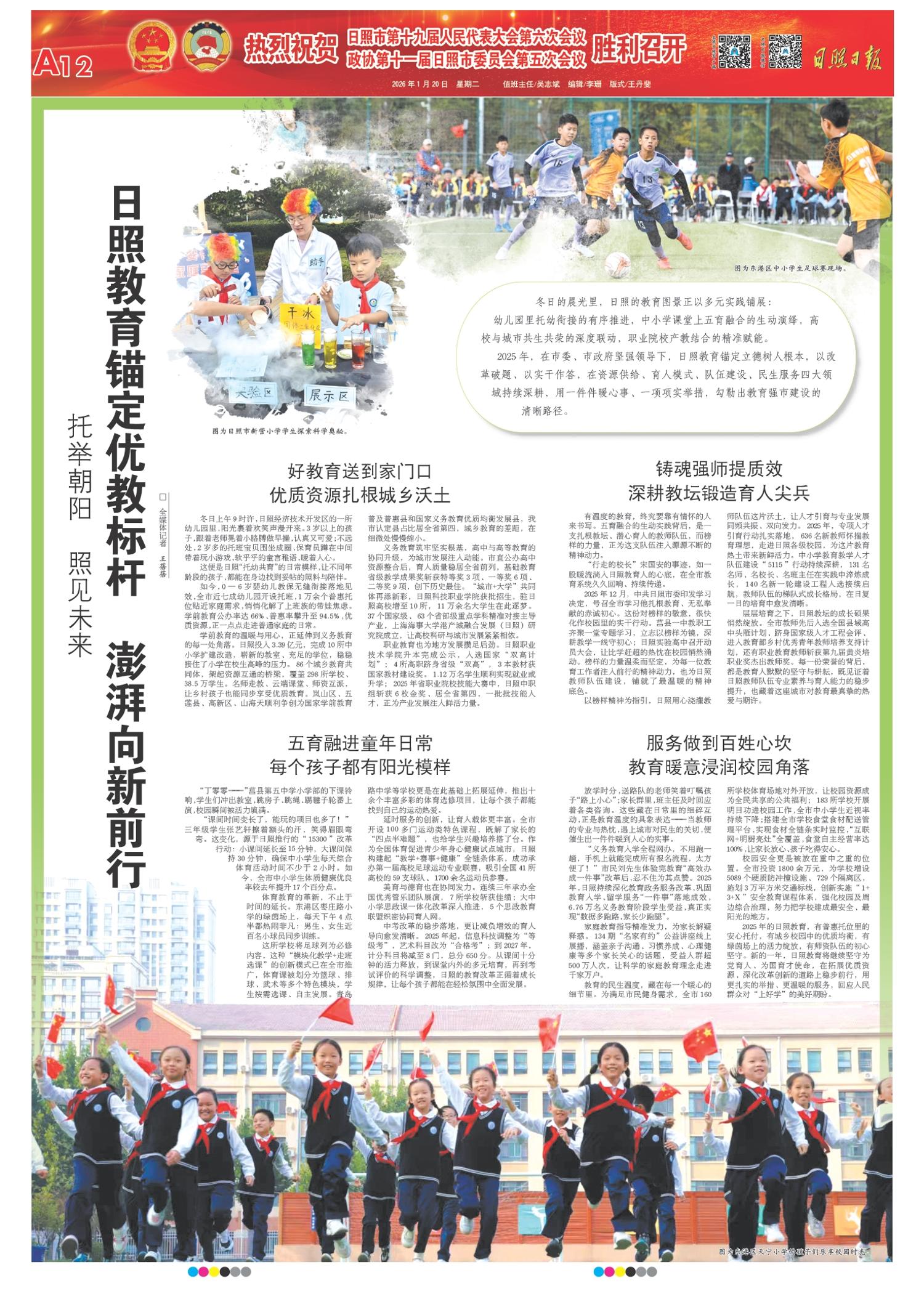 2025年的日照教育,有普惠托位里的安心托付,有城乡校园中的优质均衡,有绿茵场上的活力绽放,有师资队伍的初心坚守。新的一年,日照教育将继续坚守为党育人、为国育才使命,在拓展优质资源、深化改革创新的道路上稳步前行,用更扎实的举措、更温暖的服务,回应人民群众对“上好学”的美好期盼。
