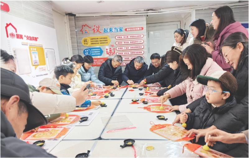 活动室里,孩子们专注地握着毛笔,一笔一画描摹着方正的“福”字。有的“福”圆润可爱,墨迹团团;有的虽歪歪扭扭,却充满童真。描金福、创意福……一个个独一无二的“福”字在红纸上绽放。孩子们举着自己完成的作品,兴奋地展示:“我的‘福’要贴在家门口!”
