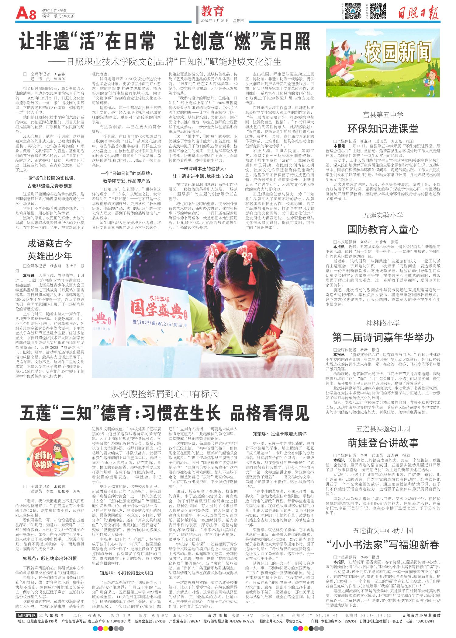 一个月前,在日照市文化和旅游局与日职联合举办的“日初”系列文化活动中,这些作品首次集中亮相。同样在这场文化盛会上,由该校创意设计系师生共创的校园文创品牌“日知礼”正式发布,为这场传统与现代的对话,增添了一抹青春亮色。