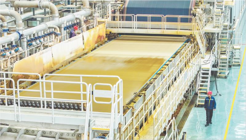 1月29日,在位于莒县的日照华泰纸业有限公司,工人正在巡视15万吨高透伸性纸生产线。该生产线主产的高透伸性纸,是当前国内外最具发展潜力的“以纸代塑”产品,具有生态环保、可降解的独特优势。