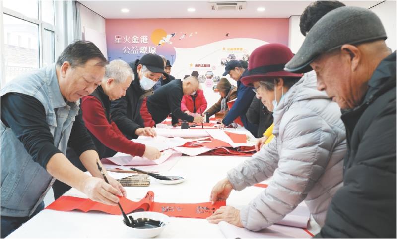 本报讯 近日,万福迎春——第十五届“百县千村”书法惠民活动在东港区石臼街道林海社区党群服务中心成功举办。活动组织书法家走进基层,现场书写春联与“福”字,为社区居民送上新春的文化贺礼,营造了欢乐祥和、文明和谐的节日氛围。