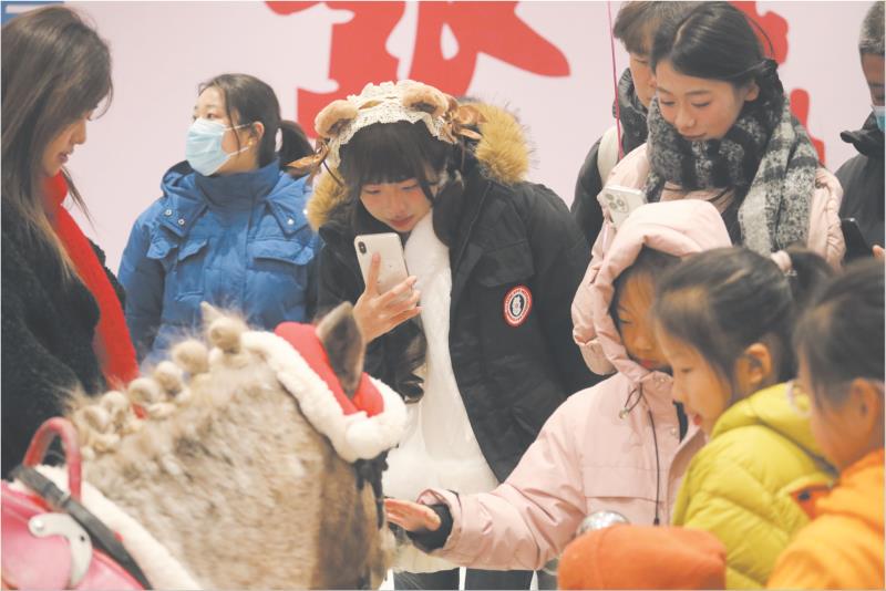 1月25日,在日照银座茂商场,一匹巡展的矮脚马吸引了众多市民驻足围观,大家纷纷举起手机拍照留念,现场气氛热烈。