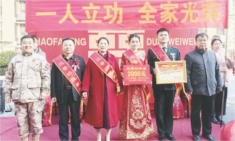 当洁白婚纱邂逅无上荣光,当执手幸福牵手无悔奉献,一场属于守护者的特殊盛典正在莒县温情上演。近日,在现役军人赵发蓬婚礼现场,莒县退役军人事务局联合小店镇党委、政府,为他送来了三等功喜报。