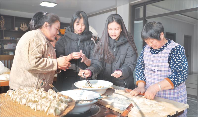 近日,东港区刘家湾村一家民宿内,日照职业技术学院国际教育系的印尼、塔吉克斯坦等留学生沉浸式体验海参水饺的制作,切身领略中国饮食文化的独特魅力。