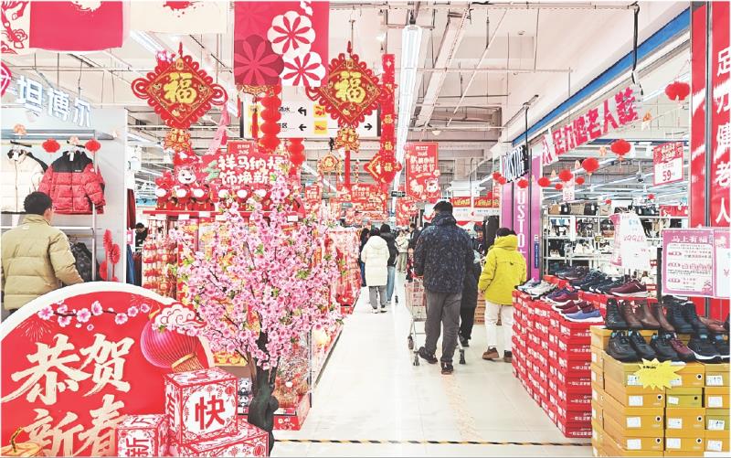 日前,在五莲县佳乐家超市,年货专区红火亮眼,货架琳琅满目。顾客们穿梭其间,精心挑选,购物车里堆满节日的喜悦。