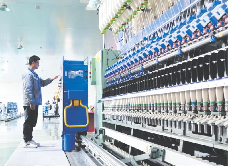 近日,在日照品特裕华纺织科技有限公司,工作人员正在操控检测细纱机自动接头机器人。