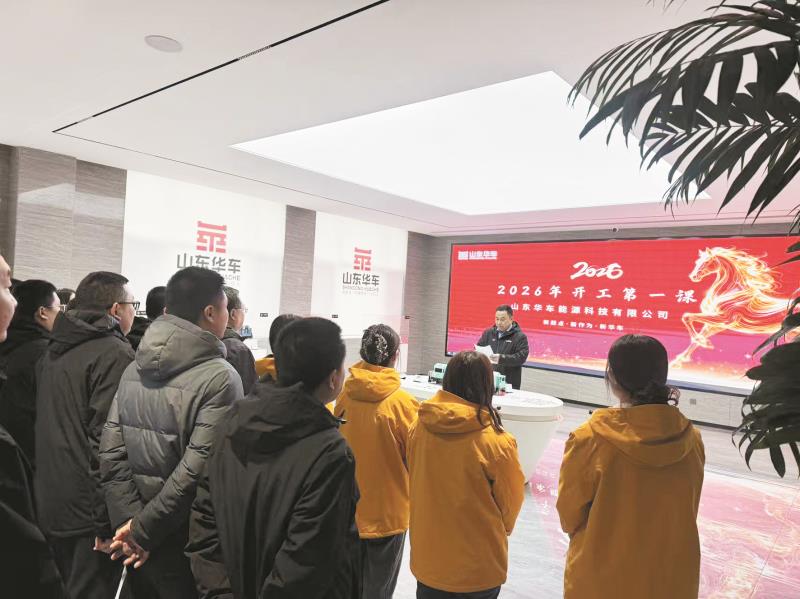 近日,在山东华车能源科技有限公司,工作人员正在进行“开工第一课”培训。