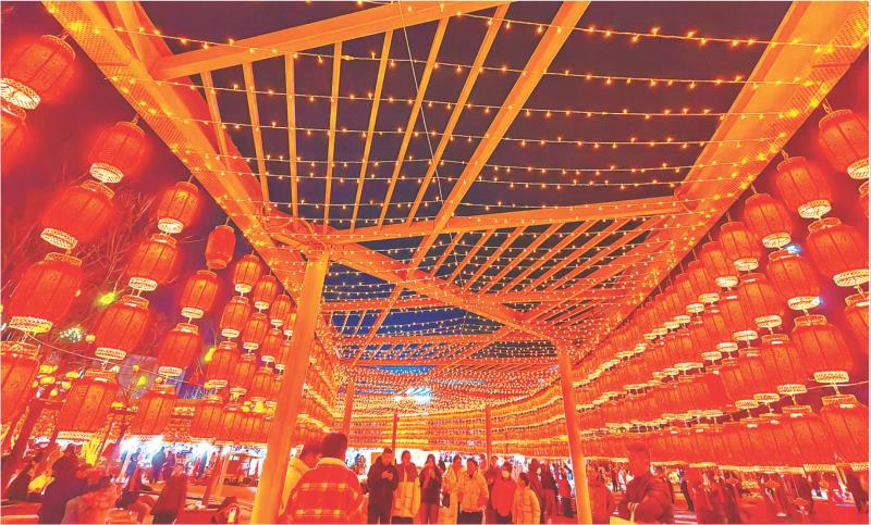 年味升腾在西山岚里的璀璨夜空。作为日照首个“生态+民俗文化+旅游”创新形式载体,西山岚里景区昼夜开放,从正月初一热闹到正月十五。白天戏雪乐园欢声笑语,环湖游船悠然穿行,入夜则是50余种梦幻灯光点亮湖畔。每晚的非遗绝技“打铁花”准时上演,铁水击空,万点金花如雨倾泻,里三层外三层的游客仰头惊叹,在光影交错中感受千年传承的浪漫。假期期间,该景区单日最高接待游客超2万人,成为岚山人气最旺的年味地标。