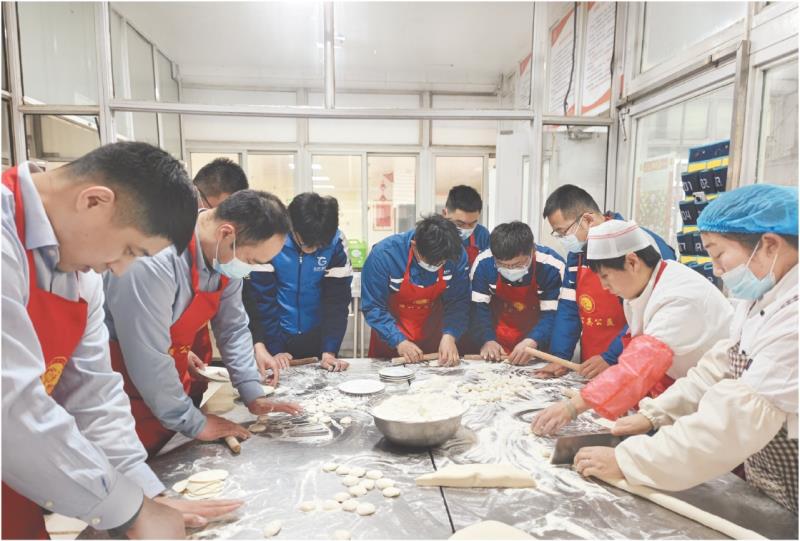 活动现场暖意融融,大家围坐在一起分工协作,拌馅、擀皮、包饺子有条不紊,欢声笑语间,一个个饱满的饺子整齐排列。这些饱含心意的饺子,传递着对长者的深切关怀,彰显了社区与企业共建的浓浓温情。
