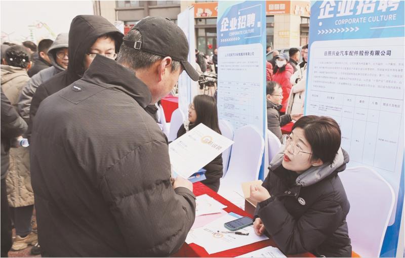 3月6日,2026年日照高新区春风行动暨就业援助季综合招聘会现场,求职者正向企业咨询岗位情况。
