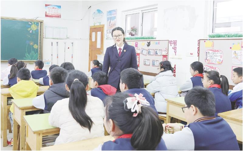 3月5日,在连云港路小学课堂上,日照经开区检察院干警正在为学生讲授网络安全知识。