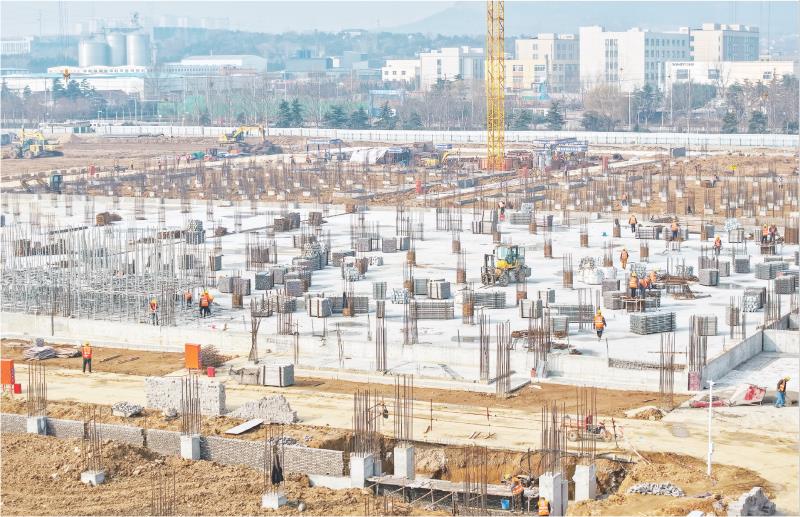 近日,在亚太森博(山东)浆纸有限公司,工作人员正在建设生活纸二期项目。
