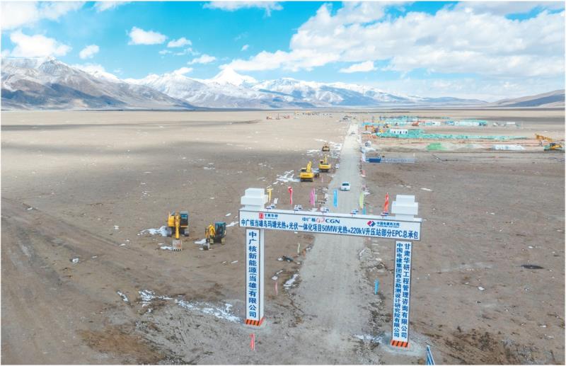 4月6日上午,中广核西藏当雄乌玛塘“光热+光伏”一体化项目中的50兆瓦光热电站在拉萨市当雄县乌玛塘乡正式开工建设。据中广核光热技术型号首席专家尹航介绍,该项目场址海拔4550米,是目前全球海拔最高的槽式光热电站。     新华社发