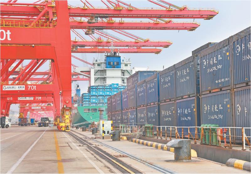 连日来,山东港口日照港集装箱码头船舶集中到港,船舶作业艘次、作业量同比实现两位数增长,作业线持续保持满线运转。