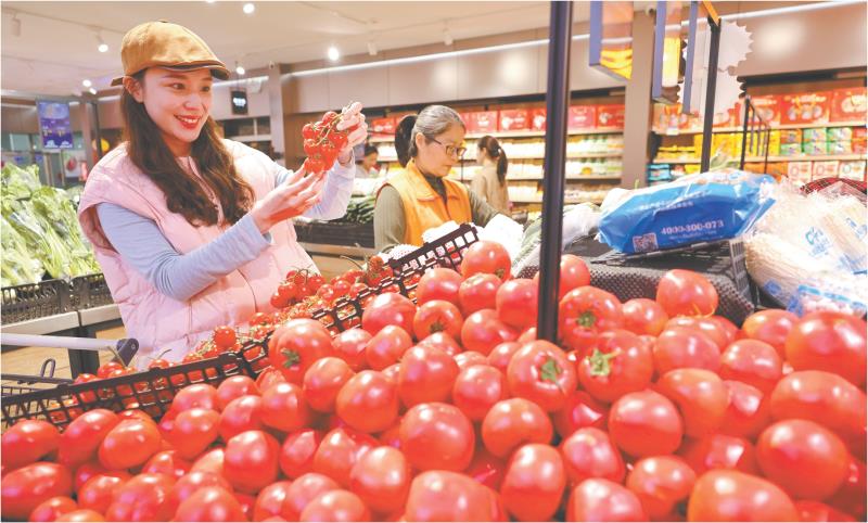4月10日,消费者在山东省枣庄市一家超市选购小西红柿。