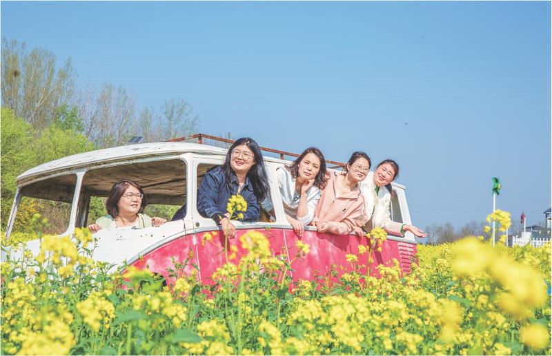 金黄花海一望无际,阳光洒落,花瓣泛着柔光,微风拂过,花浪翻涌,蜂蝶在花丛中飞舞,满是春日灵动。市民们结伴而来,漫步花间步道,大家或驻足拍照定格美景,或携孩童嬉戏游玩,摄影爱好者也齐聚于此,快门声、欢笑声此起彼伏,现场热闹非凡。
