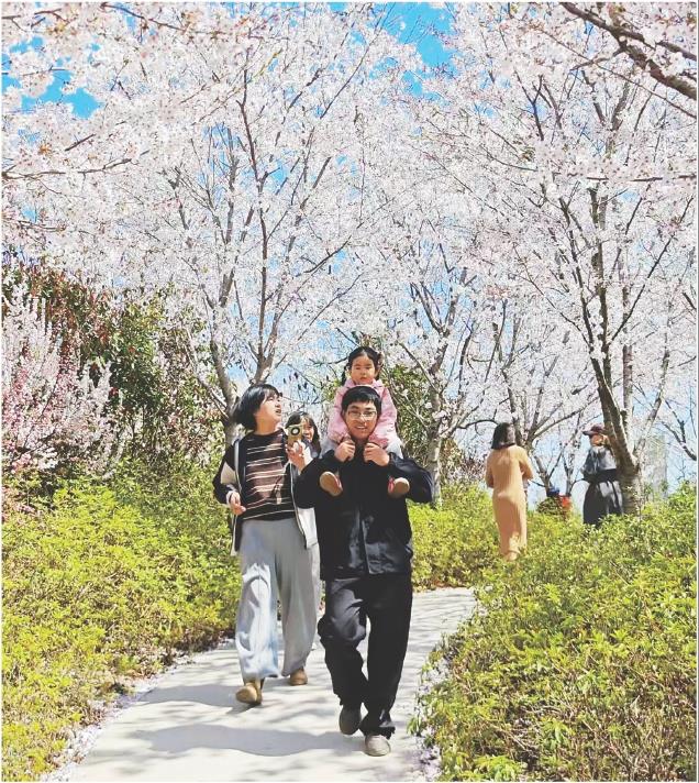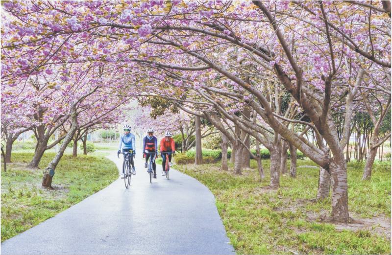 春风送暖,我市到处繁花盛开,不少市民选择骑行穿梭于花海间,尽享生态之美与运动之乐。