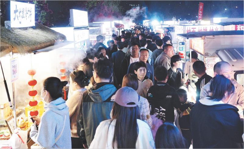 随着气温逐渐升高,夜经济持续升温,市民和游客纷纷选择到各夜市品尝美食,乐享丰富多彩的夜生活。