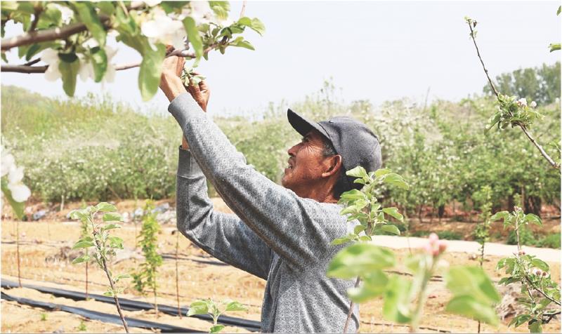 4月18日,日照高新区河山镇刘家顺村的千亩苹果园迎来盛花期。果农们正娴熟地进行疏花、整枝、授粉等田间作业,指尖轻拂过枝头的繁花,动作细致而认真。