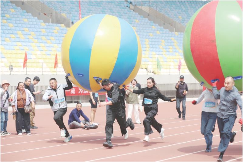 4月18日,在职工运动会现场,运动员正在激烈角逐。