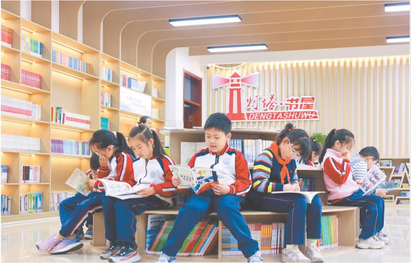 4月21日,在东港区天宁小学,学生们正在阅读图书。